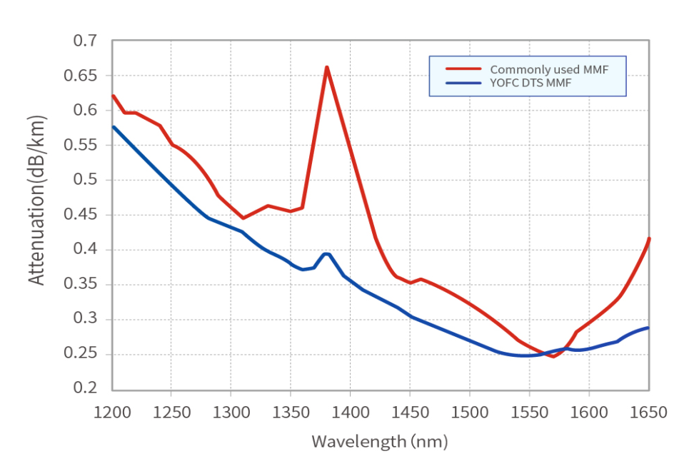 (1) DTS工作波長處衰減的優化,提高了長距離測溫的信噪比;