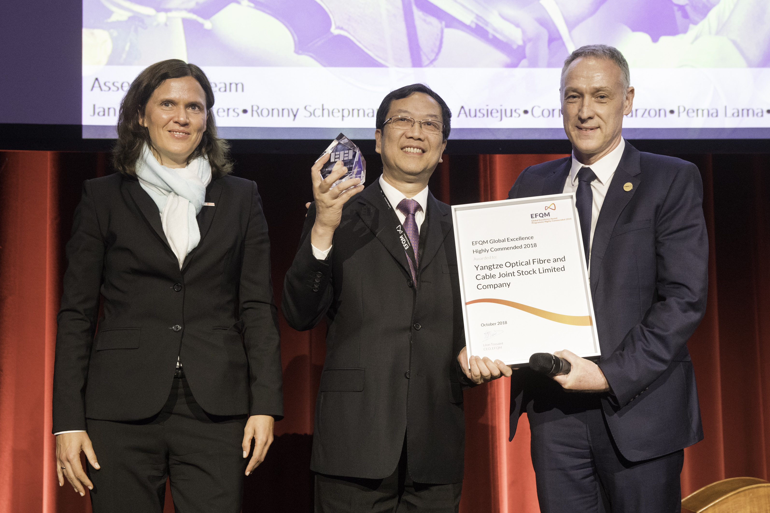 北京時(shí)間10月19日凌晨,2018年歐洲質(zhì)量獎(jiǎng)?lì)C獎(jiǎng)大會(huì)在奧地利維也納霍夫堡宮殿隆重舉行,長飛光纖光纜股份有限公司(以下簡稱“長飛公司”,股票代碼:601869.SH、06869.HK)榮獲由歐洲質(zhì)量管理基金會(huì)(EFQM)頒發(fā)的“2018 EFQM全球卓越獎(jiǎng)”。今年全球只有8家企業(yè)獲獎(jiǎng),長飛公司是歐洲質(zhì)量獎(jiǎng)設(shè)立以來首個(gè)獲得該獎(jiǎng)項(xiàng)的中國企業(yè)。公司副總裁Jan Bongaerts、運(yùn)營管理中心總經(jīng)理助理鈕國輝出席頒獎(jiǎng)儀式并代表公司上臺(tái)領(lǐng)獎(jiǎng)。