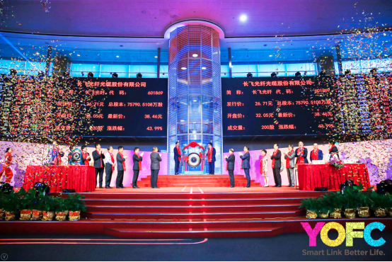 2018年7月20日,長飛光纖光纜股份有限公司成功在上海證券交易所掛牌上市。公司股票簡稱為“長飛光纖”,股票代碼為601869,首次公開發行A股,正式成為國內光纖光纜行業首家、湖北省首家A+H股兩地上市企業。這是長飛今年繼5月慶祝公司成立30周年慶典后,又一個值得慶祝的喜訊。