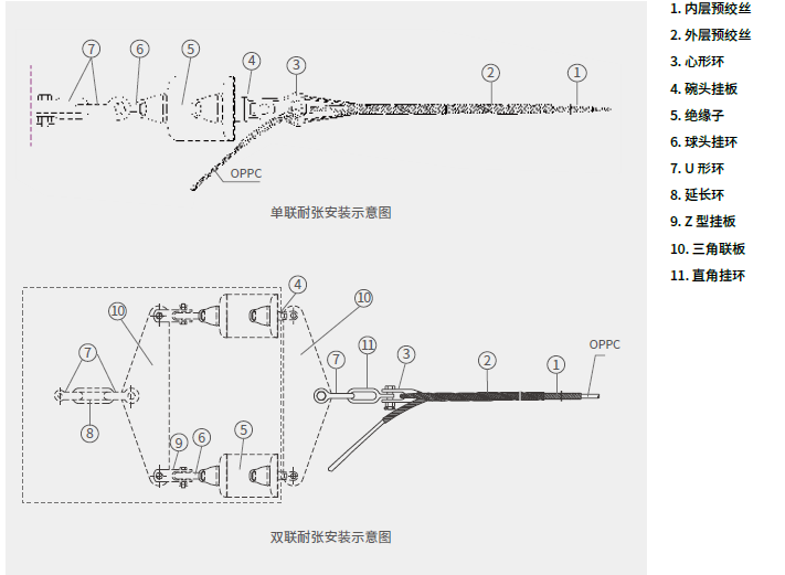 注:我司不提供虛線框部分連接件(絕緣子、球頭掛環(huán)、Z 型掛板、三角連板、U 型環(huán)、延長環(huán))。