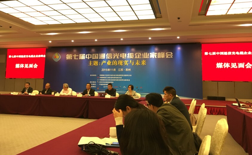 第七屆中國通信光電線纜企業(yè)家峰會于2015年11月5日在吳江賓館隆重召開。此次峰會由中國電子元件協(xié)會光電線纜及光器件分會、中國電器工業(yè)協(xié)會電線電纜分會、中國通信企業(yè)協(xié)會通信光電纜專委會聯(lián)合主辦,由蘇州光電纜業(yè)商會協(xié)辦,亨通集團有限公司承辦。該峰會為中國光電纜兩年一屆規(guī)模最大、最具影響的行業(yè)盛會,行業(yè)協(xié)會負責(zé)人、國內(nèi)光電纜企業(yè)上百家企業(yè)負責(zé)人出席,光電通信前十強企業(yè)長飛公司、烽火科技、富通集團、中天科技、永鼎股份、通鼎互聯(lián)、深圳特發(fā)信息、通光集團、凱樂、富春江等董事長、總裁蒞臨峰會。
